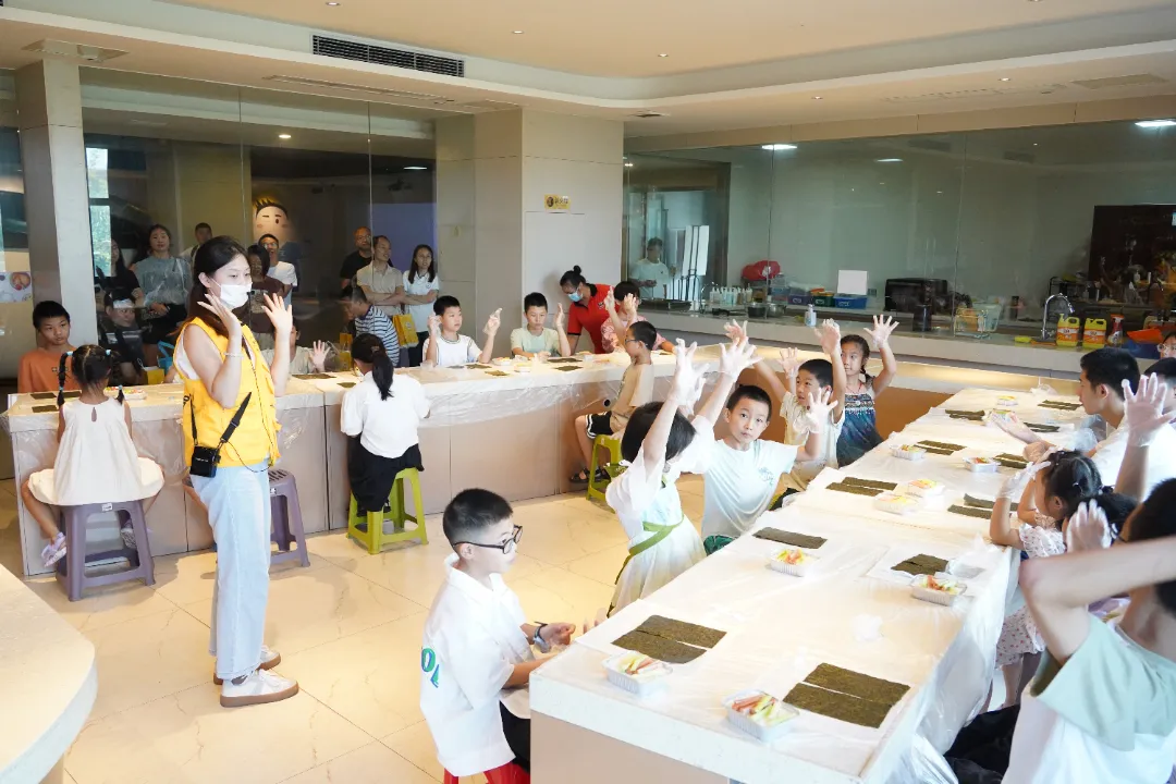除了汲取理论知识,孩子们还有机会亲身实践。在DIY米饭汉堡环节,孩子们跟随老师指引,制作出美味的米饭汉堡。这一过程不仅锻炼了孩子们的动手能力,更为他们留下了一段难忘的亲子时光。